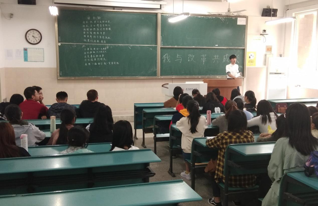接着,邵梅着重开始讲述了改革的背景,改革的定义,改革过程中奋斗的四十年和光荣的四十年。充分肯定了四十年来中国改革开放取得的重大成就,鼓励同学们身逢其时,应当将自己的未来发展与祖国的前途命运紧密的结合在一起,共同为实现中华民族伟大复兴的中国梦而努力奋斗。