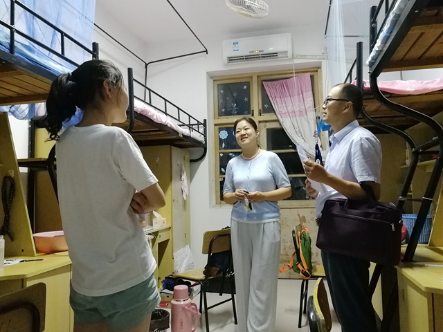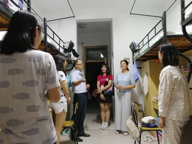 9月8日晚,经过一整日忙碌的开学报到,公司18级新同学皆陆陆续续入住宿舍。胡悦超副书记与18级三位辅导员先后前往33栋、42栋与45栋宿舍楼,逐一看望慰问新同学。领导老师们与新生亲切交谈,向同学们了解他们的家乡、生活习惯与文化风俗等,并聆听同学们畅谈初入大学的感受以及对公司的憧憬与期望。此外,针对18级历史学几位新疆同学所在的宿舍,老师们也特别给予了深切关怀,并积极鼓励其宿舍同学勇于发挥东道主的身份,友好团结远自天山上的新疆同学,带领他们尽快熟悉校园的地理环境与文化氛围,尽快融入历史与社会公司的大家庭。而胡悦超副书记也在报到当天亲自迎接新疆同学,并与他们在公司门前留下合影。