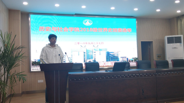 本网讯(2018级世界史 华婉蓉)为凝聚班级力量,架构班级管理基本框架,尽快使班级工作进入正轨,2018级世界史于9月27日上午8点在公司楼二楼举行班委竞选。本次班委竞选总共涵盖了班长,团支书等12个职位。选举会由辅导员赵发主持。