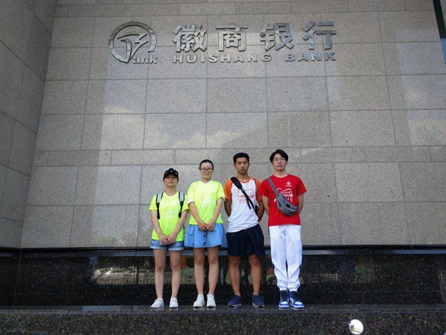 7月19日上午,团队一行人到达了徽商银行(芜湖北京路支行)。刚进门,队员们就发现左侧的等待区坐满了人,都等待着办理业务,前台时不时有人来咨询,音箱里也间隔着传来办业务的人的姓名。在徽商银行里,我们了解了一些相关业务知识,比如有关贷款和存款的知识,对芜湖商业经济的发展有了更为深刻的理解。我们也看到了其作风,即:正直、勤勉、协作、进取,很好的传承了徽商精神。