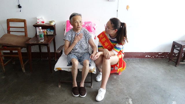 下午时分,社区工作人员与小彩虹队伍共同出发去探访特殊困难家庭的老人,他们首先到的是孤寡老人汪亦男家,社区工作人员询问了老人近况并表达了关心,小彩虹们也不甘闲适,帮老人打理了家务,陪老人聊天娱乐。小彩虹们在跟奶奶聊天时了解到,奶奶曾经有过两任丈夫,但都没有子女,后来一直孤身一身生活,有时候也觉得寂寞清冷,所以对小彩虹和社区工作人员的到访表示十分的欢迎。为了疏解奶奶的情绪,彩虹队员们给奶奶讲自己在公司发生的一些有趣的故事,惹得奶奶笑声连连。