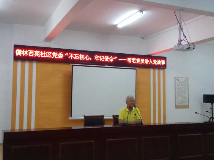 第二位老党员肖明杨在讲起当年自己入党的故事时,他的精神仍然饱满,声音依旧有力。他从自己当年入党的流程着手,讲述了在入党时为他指引方向的优秀党员的故事。他反复强调,一定要始终坚持“实事求是、理论联系实际、密切联系群众、全心全意为人民服务”的思想路线;勉励青年学子要有自信而不要有顾虑,要怀有希望但绝不能奢望,要坚持从自己做起为人民服务;鼓励同学们不断严格的要求自己,以期早日成为先进的党组织的一员。