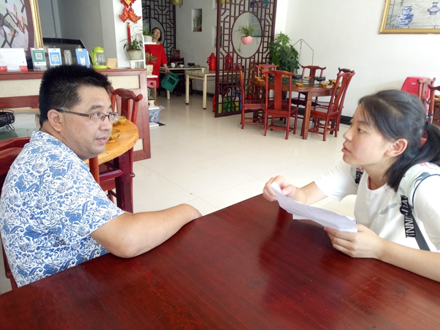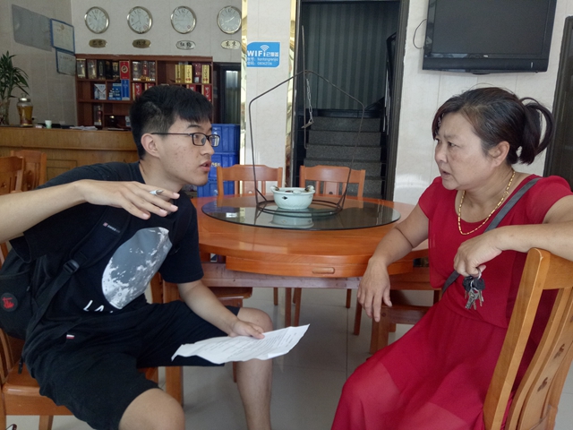 7月20日清晨,六安市天堂寨迎来近几日最高温,空气中弥漫着乡村特有的草木气息。团队成员不惧烈日,沿着小镇街道继续寻找家庭旅馆进行深度访谈。“你们是来住宿的吗?”正当我们徘徊在一家旅店门口时,老板探出头来向我们询问,团队便借此来到店中,向老板表明来意,而他也欣然接受我们的采访。