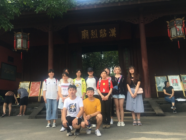 武侯祠是为了纪念中国三国时期蜀汉丞相诸葛亮而建立的祠堂,因诸葛亮生前被封为武乡侯而得名。作为中国唯一的君臣合祀祠庙和全世界影响最大的三国遗迹博物馆,吸引了来自全国各地不同年龄不同社会群体的参观学习,在欣赏祠堂内雄伟壮丽的建筑之余,队员也纷纷表示了对一对军师诸葛亮的钦佩和对其高风亮节的品质及淡泊名利远大理想的动容。“出师未捷身先死,常使英雄泪满襟”,著名诗人杜甫的诗作在祠堂中占据了绝大部分的篇幅,也不禁引得同学们的思想,千百年来,这两位时隔岁月的忠臣良将灵魂共鸣着,并慢慢积聚而成为一种民族魂。