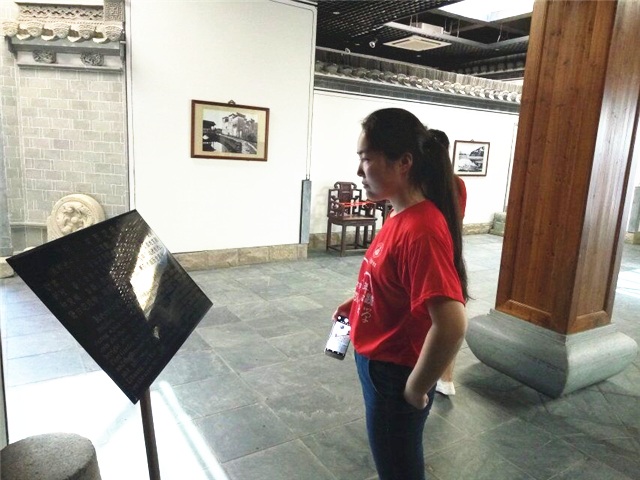 徽商博物馆以仿真场景雕塑展现古徽州及芜湖古城繁华的商业景象。团队成员首先参观了古民居,馆内设有三个展区。数以万件计藏品,都是芜湖民间收藏人士捐献,以“徽州三雕”为主,其中不乏被收藏界认为价值不菲的“宝物”除藏品外,还有多处雕塑体现古徽州及芜湖古城繁华的商业景象,生动再现了当年的豆腐店、茶庄、中药铺、祠堂等。白墙灰瓦间点缀着亭台回廊,恍如在闹市中走进小桥流水的徽州人家。并有历代名人字画、名木古树。辟有文化会所,供藏友及文人墨客聚会,随缘忘忧。必将为提升芜湖文化品位、增加旅游亮点,同时也为芜湖市乃至安徽省的文化建设事业发挥重要作用。