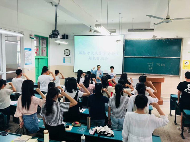 (本网讯 刘顺)期末考试将至,为引导同学们树立正确的考试观念,认真备考,积极迎考,同时也为提高同学们的安全防范能力,17公管于6月29日下午在行知楼2040101召开了诚信考试及夏季安全主题教育班会。本次班会由辅导员杨静老师主持,17公管全体员工参与并聆听了本次班会。