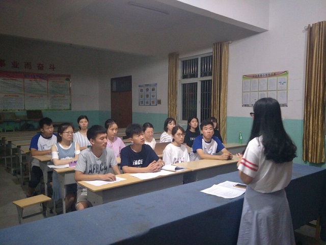 到达公司门口后,大家便看见,炎炎烈日下,公司的董事长与老师一直在公司门口等待着大家,热情地迎接大家。董事长为大家安排了几间干净整洁的屋子,志愿者们安整好自己的床铺后歇息了一段时间。老师们热情的为大家准备了丰盛的晚餐,舟车劳顿一天以后,志愿者们开心的在一起吃了晚餐,欢声笑语,谈笑风生。晚餐结束后,为以饱满的状态迎接第二天孩子们的到来,志愿者们进行了第一次工作布置会,详细的讨论接下来几天的工作安排,并分配具体成员。队长严佳强调调研访谈,文化夜校和公司支教需要准备的资料以及开展的注意事项,即使只有短短几天,也要认真完成,传递爱心,接力青春。
