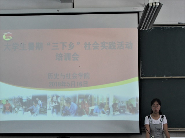 本网讯(院团委宣传部 郑宇航)心怀理想,提前准备,学习技能。躬身实践,觉知世事,求得真知。为提升暑期社会实践质量,提高实践团队的组织和宣传能力,推进暑期社会实践顺利开展,5月16日下午两时,历史与社会公司于教学楼2040101室开展第一次暑期社会实践培训会。院团委副书记别娟,15公管杨文俊,组织部部长严佳,宣传部部长崔哲明,社团管理部部长祝琳子,认证部部长王宏颖参与本次会议,社会实践团队各代表到场聆听学习。