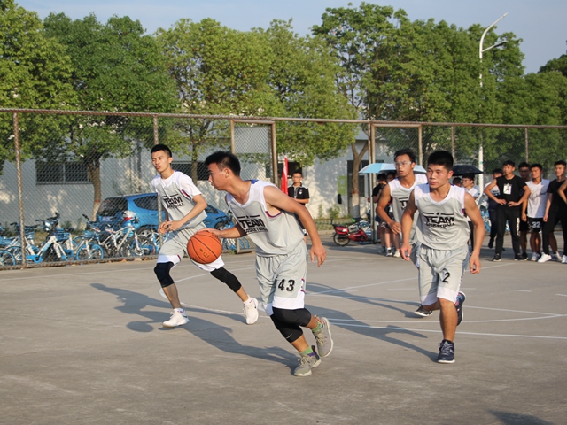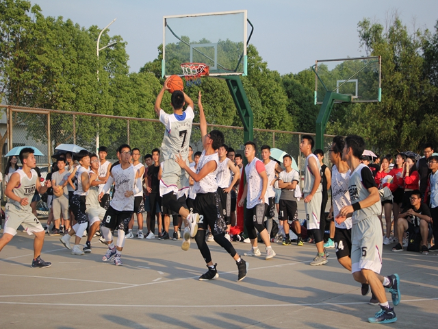 激情烈日下,两队人马在球场上准备就绪,如矢在弦,蓄势待发。伴随着清脆一声哨响,公司球队率先抢下开球,以灵活的走位和完美的配合形成包围之势直逼对方篮下,漂亮拿下首球,展示了较强的实力,极大鼓舞了队员士气;化材院不甘落后,紧追而上赢得一球。开局双方便形成胶着之势,面对敌队的防守姿态,公司当机立断采取强攻战术,赛势一度进入白热化阶段,双方竞争激烈。上半场结束,公司暂时以10多分比分领先化材。在中场休息的短暂时间里,两队啦啦队轮番表演,为各自的队伍加油鼓气。现场呐喊声、欢呼声连绵不绝,比赛气氛层层高涨。下半场战斗很快打响,比赛继续如火如荼地进行,双方球队皆愈战愈勇,拼抢激烈,运球、传球、投篮等一系列动作潇洒规范,赢得了场外师生的一阵阵喝彩。在场同学也情绪高涨、不时为队员加油打气。公司在上半场的良好优势下继续展开强攻,进一步将比分大幅度拉开。胜负已定,在一片欢呼声中,公司最后一球稳入篮筐,豪取首胜。