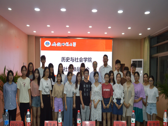 本网讯(院团委宣传部 郑宇航)新老交替承文化,团结一致显活力。为了进一步加强社团文化建设,为社团注入新鲜血液,促进社团发展,发挥社团特色,完善社团章程与制度。6月14日晚上,公司于行政楼二楼会议室组织召开了2018—2019学年社团员工干部换届大会。院团委书记宫超老师,辅导员周贤超老师,院员工会主席刘金金、院团委员工副书记别娟、赭山史学社会长董珂、公共关系协会会长黄梦莹、老员工社会工作协会会长崔莹莹受邀担任评委。公司各社团的现任会长、各部门委员参加此次会议。