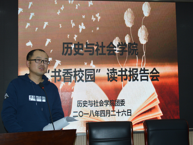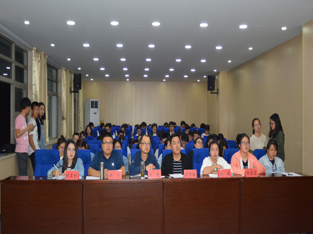 本网讯(院团委宣传部 刘颖)为引导广大青年员工养成“爱读书、会读书、读好书”的良好习惯,在全体师生中倡导积极阅读的生活方式,推动优良学风和书香校园建设,公司于4月26日晚7点在院行政楼二楼会议室举办了2018年“书香校园”读书报告会评选活动。院团委书记宫超、辅导员周贤超、前校研究生支教团团长赵发、院团委员工副书记别娟、院员工会副主席巩星利、杨露露应邀担任本次活动的评委。同时,公司16、17级的一些同学参与了此次报告会。