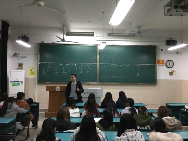 会上,周贤超老师对同学们全员安全返校表示欣慰,并对同学们出色完成了寒假作业表示赞赏。其次,周老师与大家语重心长的谈了新学期的规划。他告诉大家,大二是一个非常关键的时间段,每一位同学都要尽快找准自己的定位,制定合理学习和生活规划。他提出“三点”,即定目标、要行动、善反思。希望所有的同学,要早定目标,包括学习、生活、考研、工作、运动等目标;要抓紧行动,不能得过且过,克服拖延症,提高效率;要善于反思,他指出“经验+反思=成长”。班会最后,周老师也提出了很多要求。比如注意宿舍安全卫生,注意春季流感;班委各司其职,为同学们积极贡献;组织开展系列班级活动,营造和谐班级氛围和班级凝聚力等。