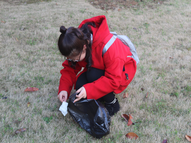 上午8点,志愿者们在36栋宿舍楼下集合完毕,一同前往公司的绿化责任区。到达责任区后,志愿者们便开始进行清扫的工作。在志愿服务活动中,志愿者们认真清扫绿化责任区中的杂物,将草坪中的纸屑、塑料袋等垃圾一一捡起,放至垃圾袋中。蹲下,伸手,拾起,放入,简简单单的动作,却包含着志愿者们奉献美丽校园,服务社会的一颗颗热忱的心。虽然志愿的过程是辛苦的,但是看着花津河畔的绿地变得更加整洁,其带来的结果却是欢乐和幸福的。接近一个小时的志愿服务活动结束后,志愿者们看到焕然一新的绿化责任区,都绽放出灿烂满意的笑容。