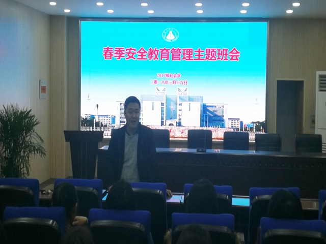 本网讯(17社会学 陈志)为迎接公司90周年校庆,响应公司加强春季安全教育管理的号召,提高员工的春季安全意识,3月19日晚,2017级社会学在公司多功能厅召开了春季安全教育管理主题班会。班会由周贤超老师主持 ,2017级社会学全体同学参加了班会。