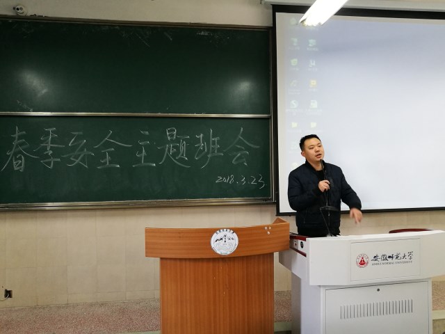 本网讯(杨玉城) 为让安全警钟长鸣,提升同学们的安全意识,同时为步入大三关键时期的同学们答疑解惑,积极、合理地规划未来,2018年3月23日中午,2015级本科生在2050101教室开展了春季安全教育主题班会。辅导员金捷老师主持本次主题班会。