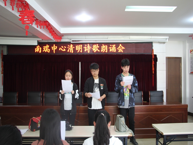 下午一点半,志愿者们由院团委组织集体出发前往南瑞社区进行志愿服务,晴空万里,同学们也都热情高涨。在社区工作人员的安排下,志愿者们首先来到了荷夏园社区党群服务中心的二楼会议室举行清明诗歌朗诵会。“牵着清明的手我们情系五洲,中华民族伟大复兴的号召激励着炎黄的骨肉”,声情并茂的朗诵感染了在场每一个人,而正如诗歌中所述,先祖先烈的遗愿向我们传达着辛劳勤勉的生活理念,真正的富有依靠丰收实现,最美的享受则需要不止的奋斗,激励同学们以积极向上的昂扬姿态面对生活与人生;朗诵会后,志愿者们紧接着前往瑞华苑党群服务中心,通过认真观看两会教育视频,感悟两会精神并丰富自身社会主义核心价值理念;随后,志愿者们深入社区,清理地面垃圾、清洗社区宣传栏、分发宣传单,呼吁人们清明时分文明祭祀......同学们各司其职,其乐融融为社区贡献着自己的志愿力量,在奉献着感受着志愿服务的快乐,真正践行“为人民服务”的雷锋理念。