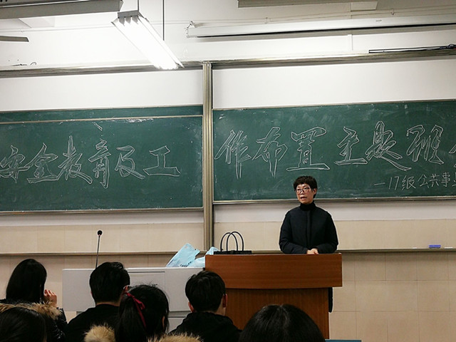 (本网讯 王雅茹)“光阴似箭,日月如梭”。考试周已接近尾声,大一上学期的学习生活即将告一段落。为布置收尾工作和寒假作业,17级公共事业管理全体同学于1月12日下午17时,在行知楼2040204教室举行了本学期最后一次班会,本次班会由辅导员杨静老师主持召开。