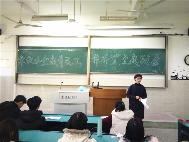 会上,杨静老师首先介绍了今年寒假的时间安排,要求大家按时离、返校,离校之前注意宿舍卫生及宿舍安全,并履行好请假手续,返乡路上注意安全,回家后发平安短信。其次,她介绍了考研及工作的形势,希望大家提早为未来做好准备。随后,他要求大家在寒假期间认真完成公司要求的作业,真正践行“读好书,好读书”的誓言。杨老师还鼓励同学们合理利用寒假时间给自己充电,为走入社会奠定基础,将读万卷书和行万里路结合起来度过一个充实的假期。会议最后,杨老师结合15级历史学同学的教团队格证考试情况,建议同学们在假期中思考自己未来发展方向,总结一年来的得与失,结合自身特点与情况制定发展计划,不负光阴。