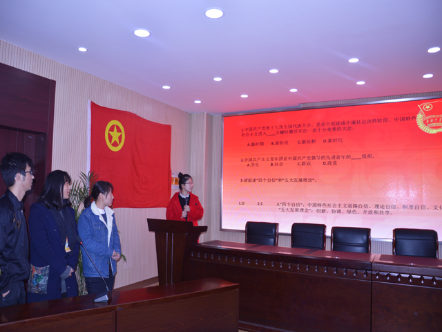 此外,为了使大家更加深刻地理解十九大精神,院团委还开展了十九大知识趣味问答活动,入团积极分子们进行抽签分组,共分为四组展开竞答活动。问答活动氛围活跃,大家热烈讨论并积极作答。在此次问答活动中,大家不仅收获了快乐,还在趣味知识竞答中学习了十九大精神,每个人都学有所获。