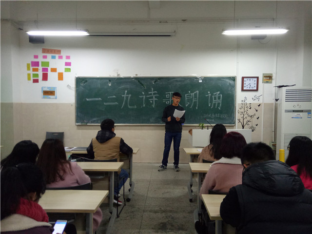 本网讯(2016级社会学 严佳)为深入纪念缅怀“一二·九”爱国运动82周年,弘扬爱国主义精神,增强班风建设。12月8日下午五点半,2016级社会班在2040101A教室召开“一二·九”主题朗诵竞赛,此次竞赛由团支书张苑主持,2016级社会学全体同学参加。