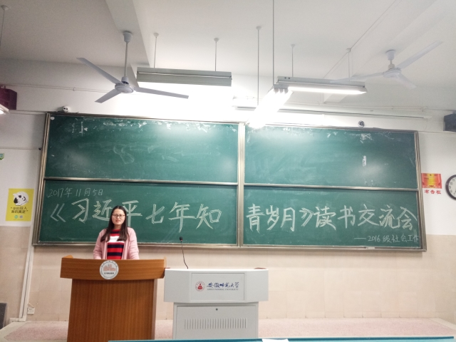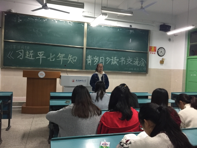 本网讯(2016级社会工作 严晨)十九大胜利召开,中国发展进入新时代。为更好地践行中国特色社会主义核心价值观,做一名中华民族伟大复兴的建设者,11月5日晚上19点,2016级社会工作专业紧密围绕十九大,在2040102教室召开第三次团日活动——《习近平的七年知青岁月》读书分享交流会。交流会由团支书祝琳子主持,各团小组长和小组代表参加。