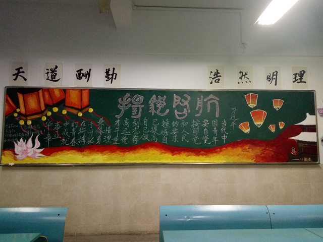 活动中,同学们积极为班级文化建设出谋划策,提供方案,力求展现一个优雅和谐的教室风貌。为营造浓厚的班级文化,同学们充分利用教室的空白墙面及走廊外墙,做到让“墙壁说话”。一幅幅笔劲苍遒的毛笔画、毛笔字,显示着历史学科的厚重底蕴,墨香淡淡,幻化为浓浓的文化气息;一张张生动活泼的班级照片,记录着班级同学的的成长轨,笑容灿烂,定格为轻松愉悦的活动氛围。条理清晰、分门别类的班级公约,集中体现了同学们的班级集体意识。板报以“扬帆起航”为主题,以中国传统文化中的孔明灯为背景,以习近平总书记对青年的寄语为主要内容,时刻鞭策和激励16历史的同学们砥砺前行。整洁的教室,充满新意的设计,独具匠心的装扮,教室中每一处精致的细节都在感染着我们,使我们在教室中感受到“家”的氛围。经过院级和校级的层层选拔,16历史的固定教室2010301以其富有特色与活力的设计优势最终赢得“英国正版365官方网站最美教室”这一称号。