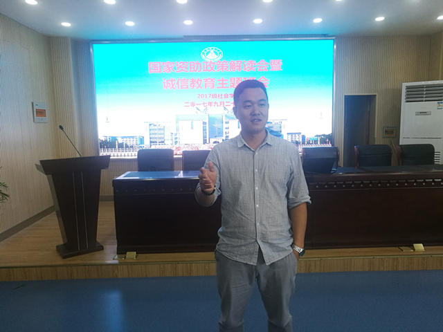 本网讯(2017级社会学 张煜 陈志)为响应国家精准扶贫政策的号召,帮助同学们了解国家资助政策,确保同学们在学业上不因家庭经济困难而受到影响,9月27日晚上6点,国家资助政策解读会暨诚信教育主题班会在历社公司多功能报告厅召开,周贤超老师主持此次班会。2017级社会学全体新生参加会议。
