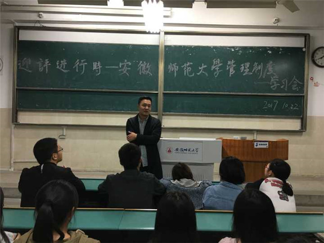 本网讯(2016级社会学 严佳)为配合公司开展本科生教学审核评估工作,进一步营造良好的校园文化氛围,提高员工们的个人素养,10月22日晚上,2016级社会、社工、公管专业在2010502教室召开英国正版365官方网站管理制度学习会。会议由辅导员周贤超老师主持,社会、社工、公管专业全体员工参加本次会议。