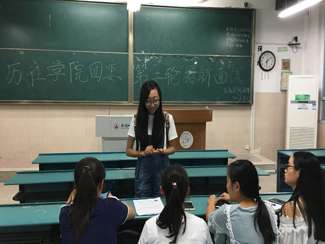 招新工作主要是以两轮面试的方式进行的。第一轮面试通过自我介绍以及提问的方式,初步了解新生们的情况,主要考察他们的工作态度;第二轮面试是为新生们模拟情景并让他们提出解决措施,目的是要较为全面的考察同学们的组织、宣传和管理的能力。在招新过程中,17级的同学们面带微笑,从容淡定,满怀自信,侃侃而谈,充分表达自己希望加入院团委这一“温暖“的大家庭的渴望。同时,大多数参与招新的同学也希望能在团委的工作中充实自己的老员工活,提升自己各方面的能力,在集体中成长。通过各部门部员的精心挑选,认真考核,一批新生脱颖而出,成功竞选为院团委各部门的新部员。