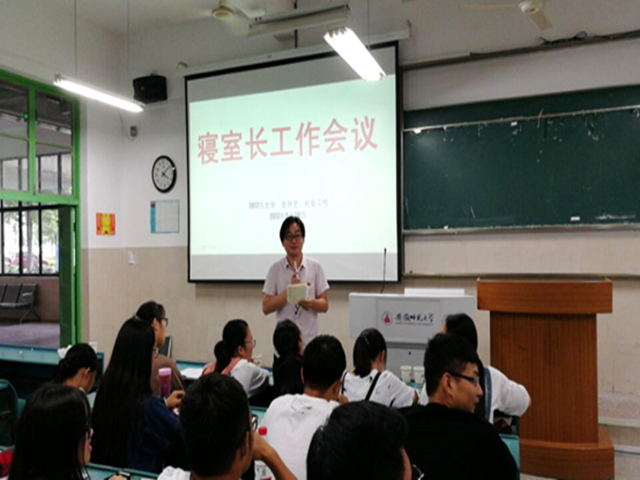 本网讯(2017级历史 马锐)长江后浪推前浪,一代新人换旧人,新生入校第一批接触的就是室友,为了加强对2017级新生宿舍纪律的管理,促进室友之间的和谐,2017年9月20日下午3点30分在辅导员王建辉老师的安排下,历史、世界史和社会工作三个专业的2017级全体新生寝室长和班级负责人在行知楼2040101教室举行了寝室长工作会议。
