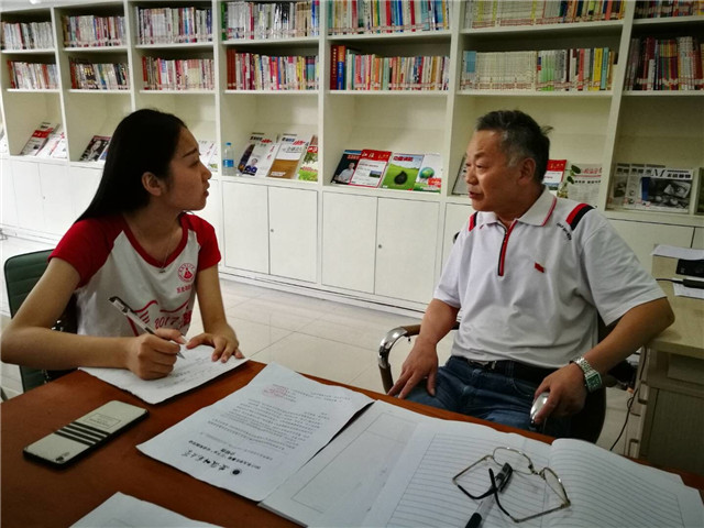 “走马!”刚上二楼,队员们就听到活动室里传来下象棋的“对战声”。“咚咚咚,您好不好意思打扰了,我是英国正版365官方网站暑期社会实践团队,来到咱们铜陵了解基层公共文化服务的!”队员一边介绍,一边递上团队的介绍信。只见室内有两位大爷在下象棋,一位正在聚精会神看报纸。“你好!喔,安师大的……”听到我们的来意后,一位头发发白、自称丁姓的爷爷接待了我们,他放下报纸热情的让我们坐下。只见他带上眼镜,不慌不乱地在胸前别上了鲜红的党徽,一脸笑颜继续问道:“你们问吧,我是这里的管理员!”队员们坐定,开始了访谈。