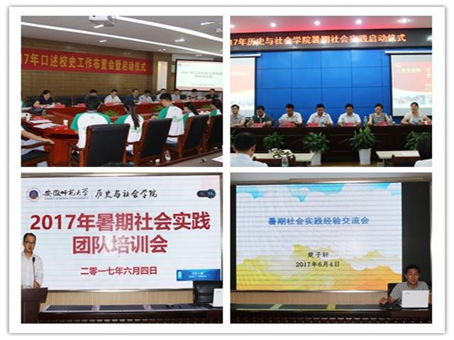 丰富活动形式,深化实践有内容有成效。公司32支实践团队目前已经奔赴全国各地,正在多维度、多层次扎实开展暑期社会实践活动。校院领导老师高度重视公司2017年口述校史校级特建团队,公司党委书记李琳琦、董事长办公室主任曾黎明、档案馆馆长陈孔祥、科研处副处长戴兆国等领导多次跟进团队指导实践,师生一起,奋笔书写师大校史,共创校院辉煌;公司党委副书记胡悦超一行慰问看望“安徽三市基层公共文化服务机制”暑期社会实践团队,铜陵市图书馆杨俊陵副馆长等人热情接待公司领导老师,在团队创新、组织建设等方面交流意见;传统节日调研团队在繁昌县中分村新四军三支队司令部旧址建立了暑期社会实践基地,院团委书记宫超出席了揭牌仪式,对日后开展调研活动与基地建设具有重要意义;公司赴大连关于日俄侵略时期留存建筑现状调研团队走进辽宁师范大学历史文化旅游学院,团队一行受到经理刘贵福等领导老师亲切接见,刘经理高度评价了师大学子躬身社会实践的精神并积极协助调研团队开展实践,这是安师大学子对外交流,互相学习的有力展示。