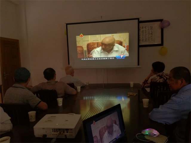 7月4日,最终站到了——举办联谊会。考虑到居委会上班时间为2:30,而活动3点整就要开始。7月4日上午,志愿者们带好物品来到新光社区,开始布置场地。气球、丝带为会议室添了几分温暖、温和的气息;海报、旗帜、横幅让活动主题更加鲜明;投影仪、电脑的使用将带领老人们走近、感受现代化。梅雨已暂停,下午三点,太阳明晃晃悬在天空,但社区内的老人还是冒着酷暑来到了居委会会议室,参加此次的联谊会。联谊会主要分为两个篇章,峥嵘岁月、回忆重现和唱响幸福生活。从播放抗战老兵的视频到长诗《不朽》的朗诵,从实用有趣的健康知识问答到轻松欢乐的夹乒乓球,老人们兴致高昂、积极参与,这是老人们对活动的最好的肯定,是对志愿者们极大的鼓舞,所有的付出都有了意义。