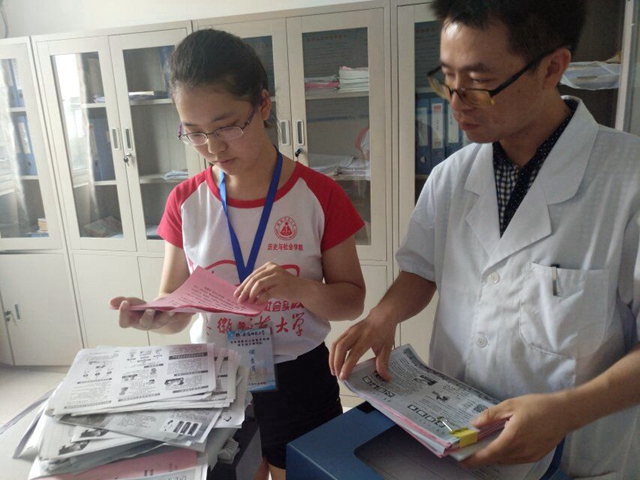 此外,在卫生院我们发现了许多粉色的“小传单”,这是由顺河镇卫生院公卫科印发的大量有关各种慢性病、常见病的健康教育处方,为民普及医学小知识,提高身体素质,做到未雨绸缪,将疾病拒于门外。作为基层公共医疗服务机构,顺河镇卫生院会每年组织大量下乡体检、疾疫预防演讲等,尽自己的力量为民服务。并定期对村卫生室的一线医疗工作者进行培训。调研中也发现了许多问题和不足,相对于基层医疗机构所服务的广大范围,卫生院和下辖的卫生室的人手都有不足的现象,导致了工作量的不平衡。地区的经济发展有限,无法及时更新更先进更大型的医疗设备。农村中中老年人口居多,也是疾病高发年龄群,家中子女不一定全在家,一旦发生意外,不能及时送往医院接受急救和治疗。这也是基层公共医疗机构较普遍的问题所在。