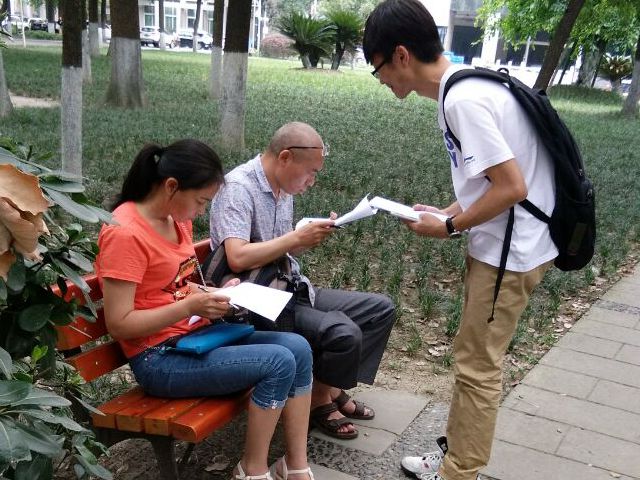 一路寻访的过程中,我们遇到了一对中年夫妇,当我们表明来意后,他们欣然接受了我们的问卷调查。调查中,我们了解到,这对夫妇是经营超市的个体商户,自己虽然没有很高的学历,但在对孩子教育的投入上,他们绝不含糊。他们表示,自己的孩子也在外省上大学,看到我们,就想起了自己的孩子是否也收到过冷遇或者是热心帮助。他们还关切的询问了我们的调研状况以及路上遇到的各种问题,并针对我们应该如何同各类人打交道提出了部分建议。小组成员备受鼓舞,采访结束后,一位队员高兴地说道:“即使是下雨,我也觉得动力满满!”