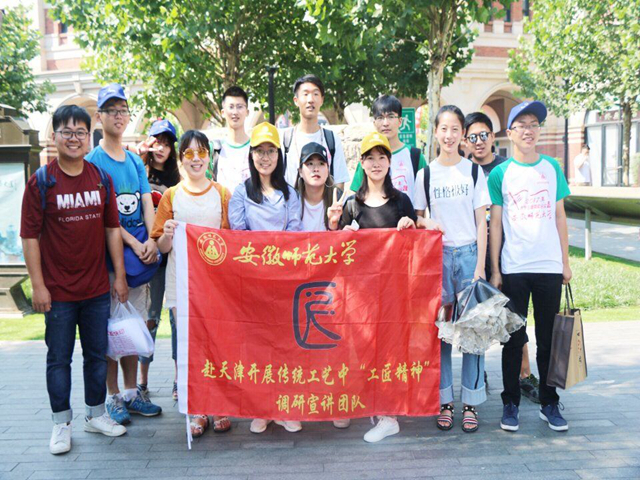 本网讯(赴津调研队 曹雪瑶)匠人用时间征服时间,我们让时代了解时代。我队此次暑期社会实践之行,建立于我队在以公司为试点,进行的“工匠精神及其时代内涵”线上问卷调研基础之上,问卷结果不容乐观:多数人对工匠精神理解多过于肤浅单一,局限于手工业行业,对其现实意义认知模糊等。因而,我队的社会实践选择以非遗古都天津为调研点,通过调研、访谈、宣讲三种方式,逐步了解、层层淬炼出时代工匠精神关键词的理解。在“宣讲进校园”“访谈时代匠人张宇、霍庆有”等工作圆满完成后,我队调研再启新篇:典型性人群问卷调研。结合当地问卷调研,了解普通民众对于杨柳青年画泥人张彩塑及匠人精神的认知与接受程度,征求民众的对于工匠精神其未来传承与发展的建议。