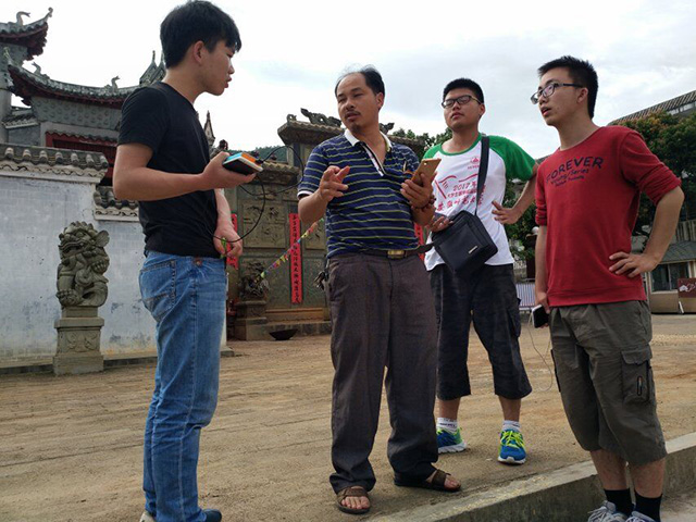 一路上小有所成,大家在不知不觉中也进入了三僚村内。因为村子里人数较多,于是队长建议团队分成两个小组,分别去走访村子里两大有名的姓氏家族——廖姓与曾姓。我们挨家挨户地敲门询问,由于时间有限,我们挑选了重要的问题进行咨询,诸如“堪舆文化在村子里的普及程度”、“堪舆文化对日常生活的影响”等。身处堪舆文化中心的村民们对这个话题也有很多要说的,上到老下到小都滔滔不绝地发表了自己的观点,我们形成了一个很融洽的交流氛围,同学们也对重点内容进行了记录。然而在这个过程中也面临了不少的困难,其中一个较为棘手的就是部分村民是使用夹杂着江西方言的口音与我们交谈,这给我们在理解上制造了一点点麻烦,所幸的是我们有江西本地的同学,在经过了一通“翻译”之后问题也迎刃而解了。