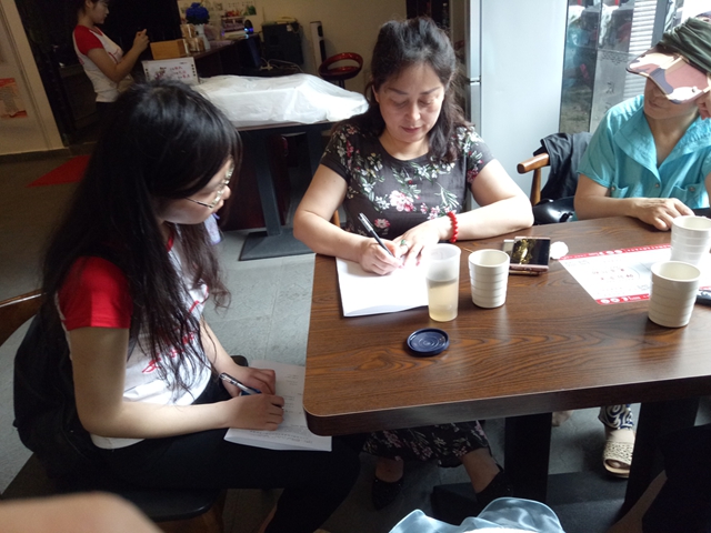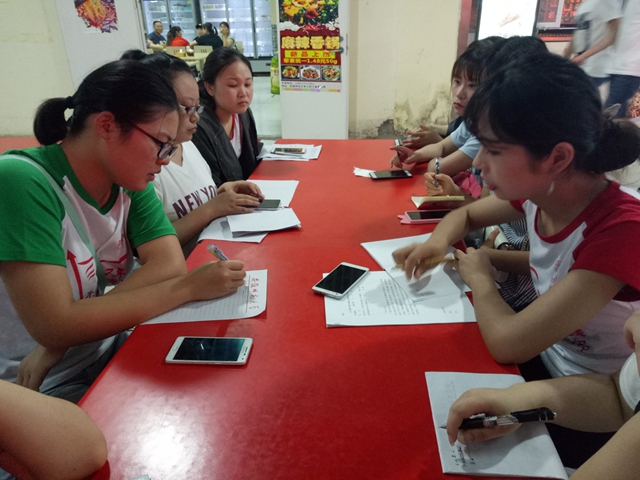 彼方正舞,此方也不甘示弱。留守公司进行问卷整理的同学们也早早进行了分工,一部分人整理对组织负责人的访谈问卷,另一部分整理对社会大众的问卷,听录音、记录、整合,分年龄层、统计数据、制作文档……几天的配合让组员们早有默契,因此衔接流畅,在合理的分工下,一切都在有条不紊的进行着。最终,两类问卷的整理工作都各自完成,看着分门别类整齐摆放在桌子上的问卷,组员们并没有什么太多的表示,但是脸上的笑容和眼神的坚毅却足以向我们展示他们的喜悦与面对接下来工作的信心。