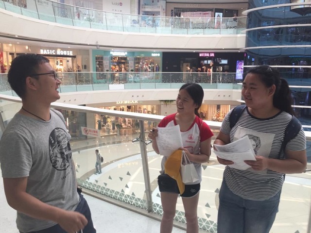 (通讯员 王秋霞)6月28日,历社公司赴南京关于空巢青年生活方式现状调研团队迎来了本团队的第三次实地调研,上午8点,前往江宁区天印大道附近进行问卷调查的小组就出发了。团队成员共有十二人,依旧按照前两天的分组模式进行。南京今天的天气酷热,给本次问卷调查之行增加了不少难度。团队住宿点距离调查目的地并不远,为了节省资金调查小组选择了共享单车以方便边走边做问卷。由于天气酷热,基本上没有多少人出来活动,导致问卷调查一度陷入瘫痪状态。即使偶尔过往的人,也因天气炎热而不愿停留做问卷。针对这个问题,小组召开临时会议,决定把调查对象转移到工业区旁边的街道、银行、公园等地方。经过适当调整,问卷调查的进度加快了很多。