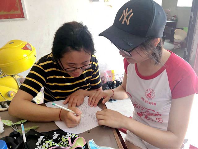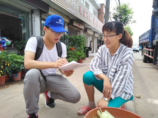 分好组之后,我们就带着各自的问卷和满满的自信心开始四处采访。不管是路边正在清洗青菜的大姐,小超市里面正在工作的收银员,还是手机营业厅里面笑容满面的销售员,在听完我们的调查目的后都欣然接受我们的采访。行走在静谧的小镇上,我们寻找着符合采访条件的女性。当然,有时也会因为直觉而发生很尴尬的事情。当我们走进一家服装店时,理所当然的以为老板应该是符合我们调查条件的,然而,走进去才发现是一位年轻帅气的小哥哥,场面一度变得比较尴尬,然后我们假装是来买衣服的,随便看了看就面带微笑的走出了服装店。事实证明,有时候直觉不一定是对的。