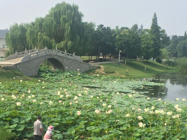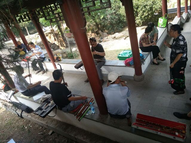 文峰公园的特色是“水包园,园包水”,河水之上水榭轩台连绵不绝美不胜收,也是当地居民修身养性的好去处。我们寻声在文峰塔旁的一处游廊中发现一队退休的爷爷奶奶正在唱民歌,通过对他们的即兴采访我们了解到他们是退休后自发组织起来的,有一位奶奶甚至坚持了十年,奶奶说,下次我们再去,她们会特意为我们唱《澎湖湾》。