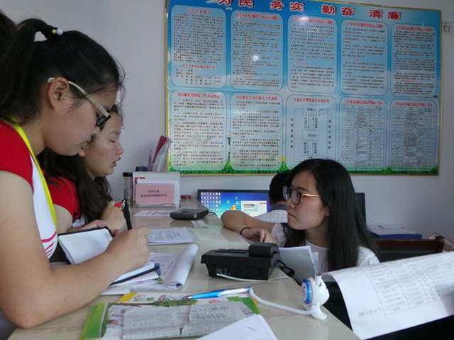 首先,队员们走访了附近的五华社区居委会,在向接待人员说明了我们的来意后,我们被带到了居委会办公室。办公室里来来往往前来办事的人员还是挺多的,但是居委会的工作人员在百忙中还抽出时间来帮助我们。两位队长向工作人员出示了我们的介绍信、工作证和策划案,接着由团队副队长详细介绍我们的活动内容并细致询问了该社区的基本情况和老年人的相关信息,工作人员就各个问题深入回答并表示乐意为我们提供力所能及的帮助。从工作人员这里,我们获得了期待已久的无为县各居委会的通讯录以及各社区的分布图,迈出了关键的一步。同时,工作人员对我们的调查问卷和入户访谈活动都表现出一定的兴趣,并约定明天上午在此社区开展入户访谈活动。