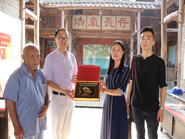 最后,古书记和宫老师共同揭牌,宫超老师代表公司向中分村赠送了芜湖铁画,至此,此次暑期社会实践揭牌仪式画上了圆满的句号。徐孝旺先生将“红色记忆作航向,有志学子朝前迈。学习正当奋发时,报效祖国指日待”这四句诗赠给队员们,激励团队以饱满的热情和刻苦的精神开展此次调研和进行今后的学习工作。团队也将以最昂扬的斗志、最刻苦的精神和最坚韧的毅力继续在中分村开展为期三天的调研活动,做传统节日文化的传承者,在保护与发展传统节日文化的道路上砥砺前行。