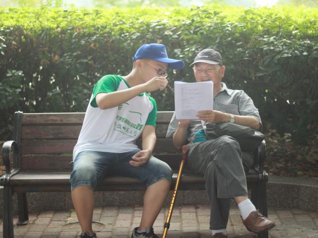 前往镜湖公园的第三组,他们的路途最远,任务也最为艰巨。下午的公园人流量较小,而且公园内来往人群文化程度差别较大,所以发问卷十分艰辛。有些大爷大妈看不清楚字,队员们就一题一题念给他们。发放问卷时遭遇拒绝,队员们也没有灰心丧气,而是越挫越勇。更令人感动的是,一位 86岁的退伍老兵主动向队员们询问调研情况,并向队员们表达对老员工社会实践的看法,称赞我们的调研活动弘扬民族文化,有利于传统节日的保护与发展。耗费三个多小时,虽然只完成了29份,但每份都是用心之作。此外,队员们还巧遇了2008年退休的体院经理,老经理也同队员们亲切交谈,对队员们的精神表示肯定。