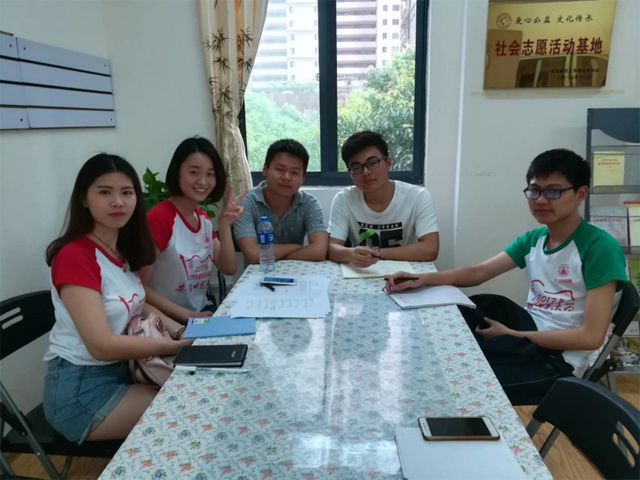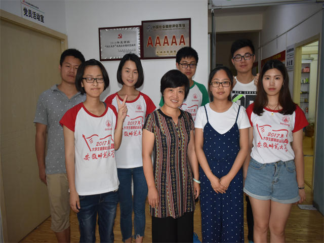 在一队队长郭晓宇的带领在,一队来到了芜湖市弘德社会服务中心。在距离目的地不到50米的路上,天空不作美,路上下起了磅礴大雨。好在事先准备充分,队员们都准备了雨伞。机构的工作人员热情的帮助我们填写了调查问卷,并就问卷的设置提出了自己的几点看法。例如:机构的负责人提出,男女的退休年龄是不一样的在问题设置的时候,问题应当更加的细致化,在设置是考虑到年龄这一层面。在填写完问卷后,机构的工作人员带领队员们了解了机构的基本情况,以及机构的具体活动。弘德社会服务中心是全市惟一一家5A级社会组织并且是2016年度市级“双比双争”先进社会组织党组织,通过机构的微信公众号能够更加详细的了解机构的活动。与此同时,队员也填写了芜湖市弘德社会服务中心志愿者登记表,成为了一名小志愿者。最后,队员们就“社会组织的现状”请教了各位老师,得到了一下回应:在大环境下行业变化非常快。在社会组织的发展中,社会购买力占据主导地位,同时也需要政府在资金和政策方面的支持。感谢之余,队员和工作人员合影留念,并承诺会积极参加组织的志愿服务活动,尽自己的一份微薄之力。