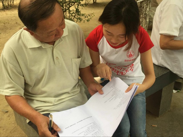 在乘坐了四个小时的汽车后,队员们抵达金寨,短暂休整后便于下午开始了第一天的问卷调查活动。队员们两两一组,一位负责问卷的发放,另一位则对当地居民进行相关话题的采访。在采访过程中,我们遇到了一些经历过革命的老人的后代。他们给我们分享了许许多多发生在金寨的一些革命历史。其中一位老人告诉我们,土地革命战争时期,境内先后爆发了立夏节起义(又称商南起义)和六霍起义,是鄂豫皖革命根据地的主要创始地和中心区,是红四方面军和红25军、红28军的主要发源地。抗战时期,金寨是安徽省抗日救亡运动的领导中心。解放战争时期,刘邓大军千里跃进大别山,在这里留下了光辉的战斗足迹。1934年12月底,中共皖西北道委在金寨沙河店将分散在皖西的红军队伍集中整编,组成红218团。这是鄂豫皖边区当时唯一一支成建制的主力红军队伍。后来,以此为基础(在岳西)再建了红28军,坚持了艰苦卓绝的三年游击战争。