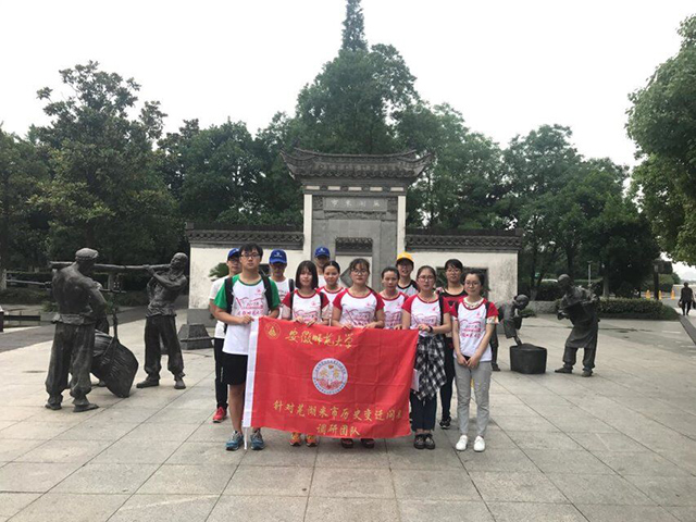 本网讯(李蒙)2017年6月26日历社院赴芜湖米市历史变迁问题调研团队来到了第二站——芜湖滨江公园,寻找有关米市的雕像,感受曾经让芜湖米市盛极一时的航运交通——长江。