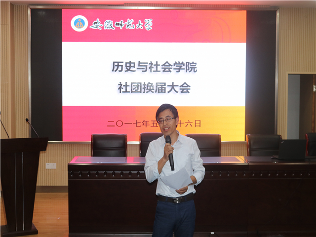 本网讯(院团委宣传部 韩明非 崔哲明)新老交替谋发展,凝心聚力创新篇。为了进一步加强社团员工干部队伍建设,为社团发展注入新鲜血液,促进社团组织与制度的完善与发展。5月26日晚上,公司在行政楼二楼会议室组织召开了2017—2018学年社团员工干部换届大会。公司党委副书记胡悦超、赭山史学社指导老师王彦章、院团委书记宫超、15级辅导员金捷、院团委社团指导老师王雨兵受邀担任评委。公司各社团的现任会长、各部门委员参加此次会议。
