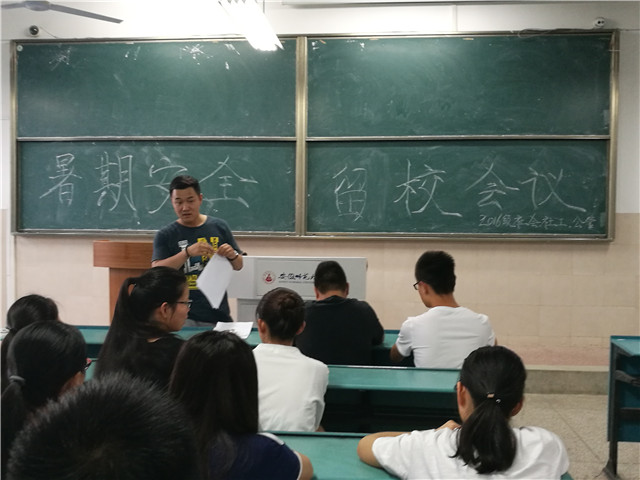 周老师以这次暑期留校安全工作布置会为契机,不仅增强了同学们的安全意识,更是鼓励同学们在社会实践期间锻炼自己的能力,他风趣地说:“开学之后,希望可以看到大家黝黑皮肤下那颗更坚强、更成熟的内心!”