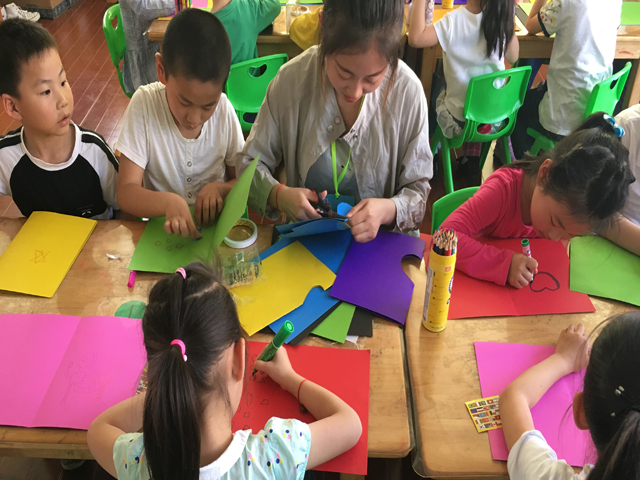 在幼儿园老师的带领下,志愿者们前往孩子们所在的教室。在志愿者进行简短的自我介绍后,志愿者们便开始教孩子们制作母亲节贺卡。孩子们制作的贺卡样式不一,有爱心、风车、大象、小鱼……图案丰富。在手工制作的过程中,孩子们热情高涨,相互配合,分工合作。志愿者们秉承“授人以鱼,不如授人以渔”的原则,自己指导,多让孩子们动手,培养孩子们的动手能力,同时提高他们的合作意识。经过大家的共同努力,每个孩子都做好了自己的母亲节贺卡,并在上面写下了自己对母亲的祝福话语,期待着能够送给母亲精心准备的节日礼物。活动结束后,孩子们和志愿者们有说有笑,依依不舍,离别时还紧紧牵住志愿者们的手不愿放开。